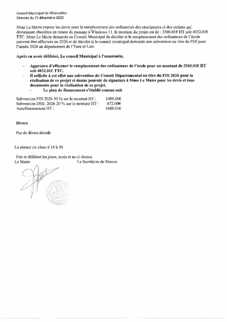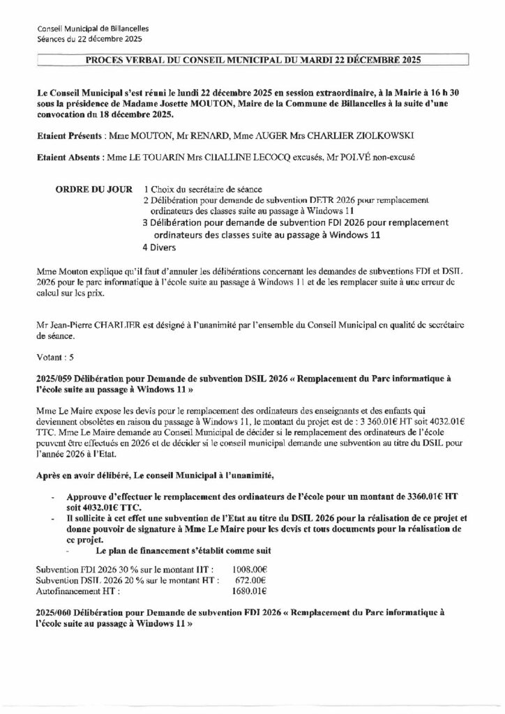 Procès Verbal réunion conseil municipal extra-ordinaire le 22 décembre 2025 Posté le23 décembre 2025Auteurvalerie