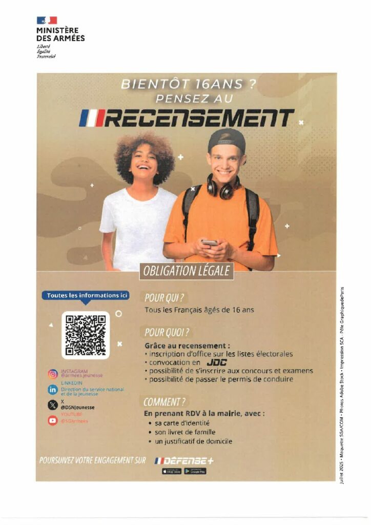 Maison »Infos»Bientôt 16 ans? Pensez au RECENSEMENT